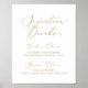 Este delicado sinal de bebida de caligrafia em ouro é perfeito para um casamento moderno. A design romântica minimalista apresenta uma magnífica e elegante tipografia amarela ouro champanhe num fundo branco com um aspecto simples e limpo.