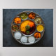 Delicioso Hindu Veg Thali. A visão de cima destaca as cores vibrantes e as texturas deste bufê de comida étnica, fazer-o uma experiência culinária sedutora.