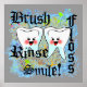 impressões legal de arte de canvas para o consultório do dentista. Pincel, fio dental, enxaguar SMILE! Dentes de arte kawaii legal com efeito moderno. As espirais e várias pinturas espalham esta bela textura de arte dentária, e dois dentes de arte kawaii felizes fazem com que seja atraente para os olhos. Preste atenção às crianças (assim como aos adultos) no escritório dentário com um legal impressão de arte gráfica personalizada com uma mensagem importante. Dentes limpos são dentes saudáveis e felizes!