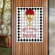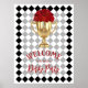 Poster de boas-vindas da festa do dia Derby - INSTANTE DOWNLOAD e/ou IMPRESSO - apresenta um troféu dourado cheio de rosas vermelhas em um fundo de verificação preto-e-branco com sua mensagem em caracteres quicos. CORRESPONDENTE a itens na nossa coleção.