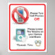 Gráfico para lembrar aos clientes e pacientes de escritório médico que desligam seus celulares e reduzem o volume em seus jogos e músicos. Sinal de parede clínica do escritório e médicos. Por favor, desligue seus celulares. Por favor, reduza o volume em seus jogos e músicas.