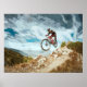 Imagem que combina a beleza natural do terreno montanhoso com a ação de um atleta que se prova numa trilha de risco