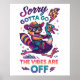 Design vibrante e colorido com um desenho animado que veste um chapéu de vaqueiro que solta um quadrinista de desenho animado. O texto colorido diz: "Desculpe, mas as vibrações estão apagadas". Esse design está disponível em uma grande variedade de produtos.