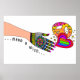 Sonho e gentil... Seu pequeno será mesmerizado pelas lindas cores e pela mão branca alcançando o tão estilizado coração e sinal de paz.