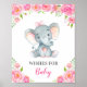 Poster Desejos para bebê Elefante Rosa Chá Sprinkle