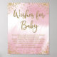 Letreiro de jogo de chá de bebê com desejos para o bebê com fundo glitter rosa e dourado. Basta adicionar o texto de sua escolha no estilo de fonte e cor que preferir. Estes letreiros de jogo de chá de bebê rosa e dourado ficam ótimos em uma moldura decorativa na mesa do seu evento.