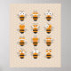 Lindo Poster para o quarto do seu filho com 12 ilustrações de desenhos animados de abelhas fofas e engraçadas colocadas sobre um fundo de favo de mel. Todas as abelhas têm expressões faciais diferentes: sorriso, risada, piscadela, triste, etc. Não hesite em entrar em contato comigo através do Zazzle se precisar de ajuda para criar produtos correspondentes, por favor.