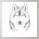 Poster Desenho Da Cabeça Do Lobo Negro E Branco Engraçado