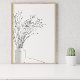 Poster de desenho de linha de flor minimalista, design de desenho de linha com flor num vaso de fundo branco