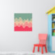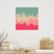Um design constituído por formas irregulares de onda ou colina dispostas como uma paisagem com progressão de bandas, uma atrás ou sobre outra brincando abstratamente com cor e espaço. A design também lembra muito o som e a música com as formas da onda e harmonizando as cores.