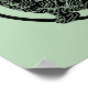 Desenho de linha de recorte de uma tartaruga de mapa em um círculo. A cor verde do fundo mostra através do espaço em branco do design. Inspirado pela escultura de arte em metal. Preto em verde-claro.