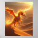 This artwork is special because it masterfully depicts a quintessential fire dragon. Its vibrant, fiery colors and dynamic pose perfectly convey power and majesty. The desert setting complements its elemental nature, making it feel like a natural, yet awe-inspiring, force of its environment. It's a high-quality, visually striking image that immediately captures the imagination as a classic fantasy creature.