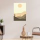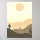 Cena moderna do deserto abstrato em tons neutros de pêssego, marrom e esticado, apresenta sol, colinas e silhuetas cactos