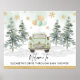 Bipe, Buzine, Grite e Acene! Placa de boas-vindas exclusivo drive-through com elegantes pinheiros aquarela, paisagem nevada e um carro vintage chic