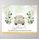 Beepe, Buzine, Grite e Acene! Sinal de boas-vindas único para drive-through neutro em gênero com elegantes folhagens em aquarela e um carro vintage chic