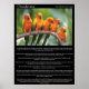 O cheio Desiderata de Max Ehrmann: Vá placidamente entre o barulho e a pressa... Apresentando cinco canários cor de laranja e verde sentados ali, com um fundo preto e um texto branco. Os versos inspiraram jovens adultos desde a década de 1920 e são tão populares hoje como sempre foram. Foi dado como presente por pais, avós, padrinhos e tias e tios amáveis desde que foi escrito. Eles descobriram que é uma das poucas formas de que tal sabedoria passe por aqueles que não perdoam hormônios, dando apoio à próxima geração através de seus anos rebeldes.