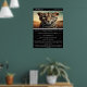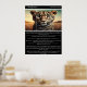 Um poderoso close de um leopardo, seus olhos irradiando sabedoria e força. Os detalhes complexos de seu pelo são mostrados contra um pano de fundo natural e macio, criando um sentido de intimidade e conexão. "Desiderata" e "Max Ehrmann" são elegantemente colocados, enquanto um trecho cuidadosamente escolhido abaixo fala sobre os temas da paz, da autodescoberta e da beleza inerente ao mundo natural. A paleta de cores quentes e a iluminação equilibrada melhoram a sensação geral de tranquilidade e contemplação.