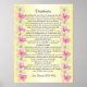 Desiderata "coisas desejadas", prosa. Uma filosofia perfeita de vida impressa em fundo amarelo com uma borda de flores de plumeria rosa e branca. Frangepani havaiano. Impressão de arte, arte de parede ou poster.