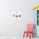 As cores vibrantes se entrelaçam em um design abstrato lúdico, com uma mistura de elementos circulares e lineares. Linhas e formas negretas criam uma composição dinâmica, reunindo tons de azul, vermelho e verde.