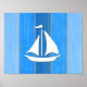 Design de temas náuticos com decoração de embarcações à vela em fundo de madeira de azul listrado e cinza. Por favor, note que isto não é feito de madeira, é um impressão gráfico de madeira.