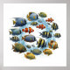 Um gráfico de alta qualidade mostrando uma vibrante e diversa escola de peixes. O fundo branco e limpo destaca os detalhes e cores individuais de cada peixe, fazer perfeito para uma variedade de produtos.
