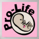 Excelente para pró-vida ou para uso durante protestos. Texto "Pro-Life", com uma ilustração de um feto no útero. Conheça este design anti-aborto.