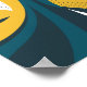 Um design abstrato moderno com curvas arrojadas e abrangentes em tons amarelos, negros, brancos e escuros. A composição cria um sentido dinâmico de movimento, com as curvas convergindo e divergindo em um movimento fluido, semelhante a onda. Áreas de padrões de meio tom pontilhado em cores correspondentes adicionam profundidade, textura e um toque de pop-arte retrô. A interação entre cores sólidas e gradientes pontilhados melhora o ritmo visual geral e a energia do trabalho de arte.