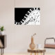 Teclado preto e branco clássico com um estilo curvo. As notas de música acrescentam uma aparência festiva.