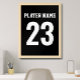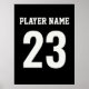 Celebre o seu jogador favorito com esta design impressionante feita para se parecer com o fundo de uma camisa desportiva. Personalize com um primeiro ou sobrenome e número. Perfeito para entusiastas esportivos, este poster é ideal para crianças e quartos adolescentes, salas de jogos ou cavernas de homens. O contraste preto e branco em negrito garante que ele se destaque como uma peça de declaração. Adicione à sua coleção um toque de talento esportivo. As cores podem ser modificadas para coordenar com o grupo ou a decoração.