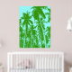 Abstrato de palmeiras gráficas esbeltas e impressionantes que foram posterizadas com design. Verde e azul.