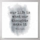 Esta poster de citação motivacional tem design de tipografia com texto nossa vida é o que nossos pensamentos fazem de Aurelius sobre o fundo de design abstrato de pintura em tons de cinza. Direitos autorais originais Ann Powell