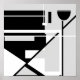 Recorte os tamanhos de quadros padrão ou sua própria preferência pessoal (disponível em tamanhos pequenos a grandes de várias proporções e diferentes tipos de papel). Em destaque está um design abstrato que se parece um pouco com a cadeira de um diretor — ou um vidro (ou o que quer que você perceba). As cores elementares do preto, das cinzas e do branco se unem no estilo do design moderno do século Médio.
