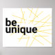 Design gráfico de um ditado "Seja único" com linhas em cores amarela e preta. Tipografia urbana.