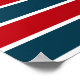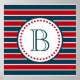 Design de temas náuticos com decoração em forma de monograma, em forma redonda, com estrelas sobre fundo listrado a azul, vermelho e branco