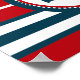 Design náutico com decoração em forma redonda com âncora sobre fundo listrado vermelho, azul e branco