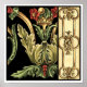 Uma pintura ornamental com design floral atrativo, fechada por bordas pretas. As cores verde e vermelha saltam dos obrigados impressão para o fundo preto. Que maravilha seria isto na sua parede? Compre e descubra!