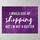 Comprar problema? Sem problemas! Você não é um desistente. Esta design engraçada diz "Eu desistiria de comprar, mas eu não sou um desistente." Perfeito para quem gosta de comprar, é um vagabundo ou viciado em comprar.