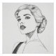 Illustration en noir et blanc d'une femme élégante au style rétro. Elle est représentée de profil, avec un regard intense et des lèvres foncées. Ses cheveux sont coiffés en vagues ondulées, rappelant le style glamour des années 50. L'illustration montre un grand niveau de détail dans les traits du visage et met en valeur la grâce et la sophistication du sujet à travers un travail de ligne expressif.