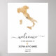 Poster Destino de Casamento Itália Mapa Dourado Coração M