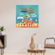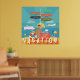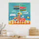 Um sinal de destino de férias posta um navio de cruzeiro um avião e mais temas de viagem. Esta design parece realmente eficaz nestes Poster