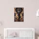 Uma figura divina que incorpora a dualidade entre luz e escuridão. Com asas imponentes e um halo dourado, ela ergue círculos negros como portadores de segredos, enquanto folhas flamejantes emergem de suas pernas, simbolizando o renascimento. A paleta de pretos e dourados cria uma atmosfera mística e poderosa, perfeita para aqueles que buscam uma peça que dialogue com mitologia e espiritualidade. Ideal para espaços que valorizam o drama e o simbolismo, esta obra transforma paredes em portais de lendas antigas, inspirando admiração e reflexão.