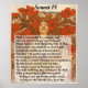 Poster com o Sonnet 18 de William Shakespeare, também conhecido pela sua primeira linha: "Devo compará-lo a um dia de verão?" Este poema é um dos mais famosos de Shakepeare. O poema romântico é parte da "Sequência Justa da Juventude". O poeta decide que o seu amado não pode ser comparado a um fugaz, uma vez que viverá para sempre no poema: "Enquanto os homens puderem respirar, ou os olhos puderem ver, tanto tempo vive isso, e isso dá vida a você."