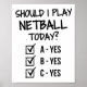 Devo jogar netball hoje? Para a pessoa que ama jogar ou treinar camogie. Um presente engraçado para o Natal, os Aniversários, o Dia das Mães, ou para você.