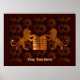 Um "esculpimento de madeira" gerado por computador, no estilo tradicional: leões protegendo os Dez Mandamentos. Personalize adicionando seu próprio texto.