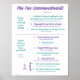 Poster dos 10 Mandamentos, escritos com crianças em mente (a linguagem original aparece abaixo de cada um); também inclui o "Maior Mandamento" do Novo Testamento