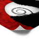 Esta design única apresenta uma bela mulher com rosas vermelhas no cabelo. O rosto dela é decorado no estilo do Dia dos Crânios de açúcar Mortos, que inclui linhas giratórias, boca estilhaçada e nariz preto. Grandes círculos negros cercados por pequenos pedais redondos aparecem em volta dos olhos da menina e um pequeno coração de cabeça para baixo se senta no meio da testa. O cabelo preto a jato da mulher cai abaixo dos ombros e se mistura com seu vestido preto de renda. Este padrão de na moda é um belo exemplo deste Dia dos Mortos.