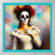 Mergulhe na rica tradição do Dia dos Mortos com esta design de uma mulher vestida para a celebração. Essa imagem capta o coração da celebração, apresentando um traje decorado e uma variedade de flores. A imagem exprime um sentido de respeito e memória para aqueles que passaram. Esta design é mais do que apenas uma trabalho de arte; é uma celebração da vida, da memória e da cultura. Esta design é perfeita para aqueles que amam a celebração do Dia dos Mortos e o que ela representa.