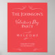 Este é um moderno, Dia de os namorados de boas-vindas do partido. Ele está em tendências em vermelho/ rosa com texto branco. Ele tem espaço para você adicionar seu nome e detalhes da festa. O texto é enquadrado por corações de na moda. Esta design elegante e moderna é perfeita para a celebração do seu Dia de os namorados e ideal para acolher os seus convidados. Basta digitar os detalhes da sua parte na caixa de texto personalizar esta. Aqui você também pode mudar o resto do texto se quiser. Para alterar a cor ou a fonte, dê uma olhada na ferramenta de edição de design. Se precisar de ajuda para personalização ou para um projeto personalizado, entre em contato comigo por meio de bate-papo zazzle ou email: ursuladawnmoon@gmail.com