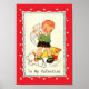 Fácil de personalizar o mini poster do Dia de os namorados, basta adicionar sua própria mensagem pessoal. Ilustração Vintage design de feriado vitoriano com um Feliz dia de os namorados louro giro segurando um gatinho longe de dois cachorros que estão correndo pelas pernas e perseguindo uns aos outros. Antiguamente amor e efemera romântica. "Para o meu Namorados."