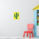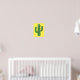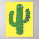 Este poster espetacular apresenta uma imagem de arte digital de um cacto verde giro coberto em picles verdes escuros. O cacto tem olhos patetas e um sorriso no rosto.